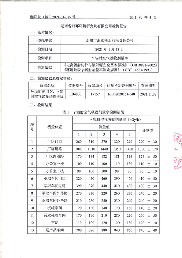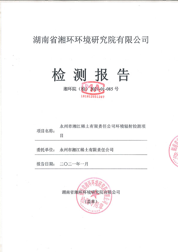 永州市湘江稀土有限責(zé)任公司放射性水平檢測(cè)報(bào)告